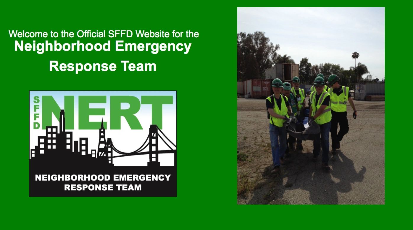NERT is a free training program for individuals, neighborhood groups and community-based organizations in San Francisco. Through this program, individuals will learn the basics of personal preparedness and prevention. The training also includes hands-on disaster skills that will help individuals respond to a personal emergency as well as act as members of a neighborhood response team.